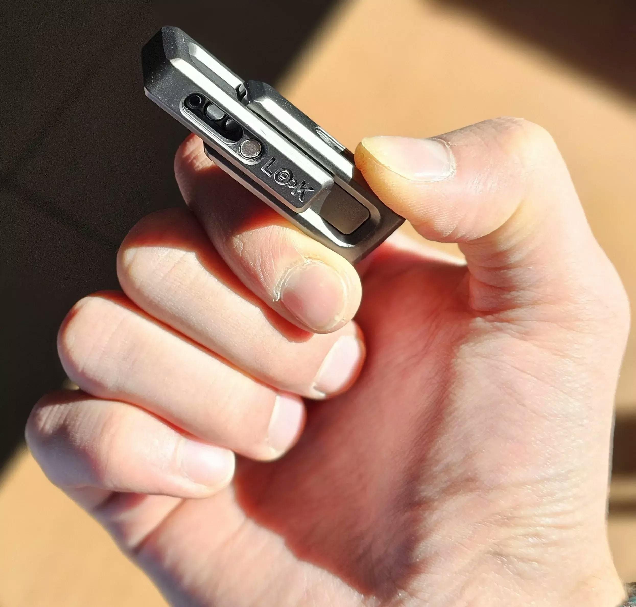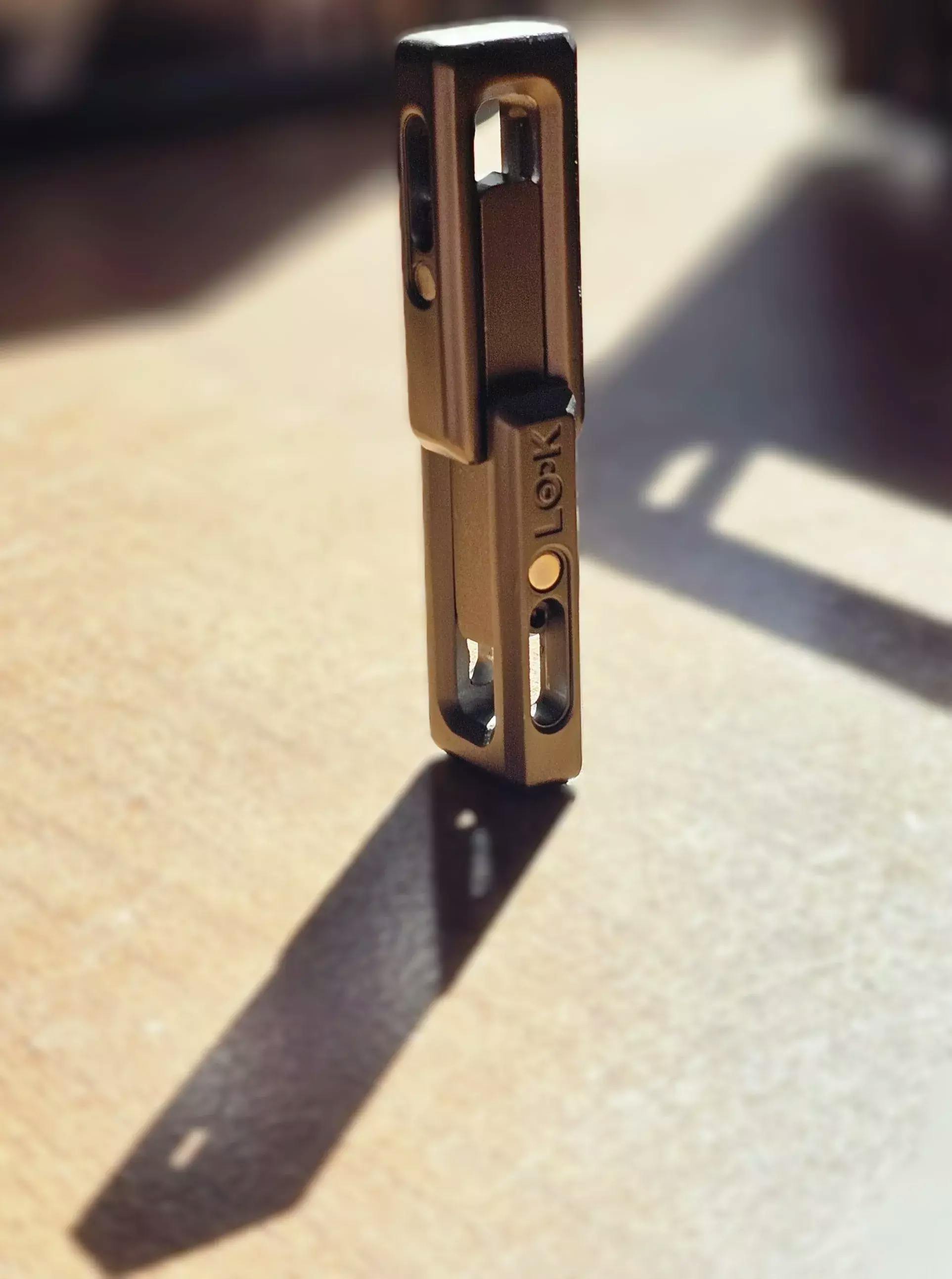 The Mag lock is a small handheld device designed to help relieve stress, improve focus, and reduce anxiety through tactile engagement and compressive motions.